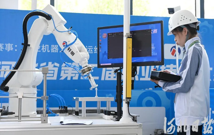 4月26日,河北省第二届职业技能大赛的“工业机器人系统运维”比赛项目现场。